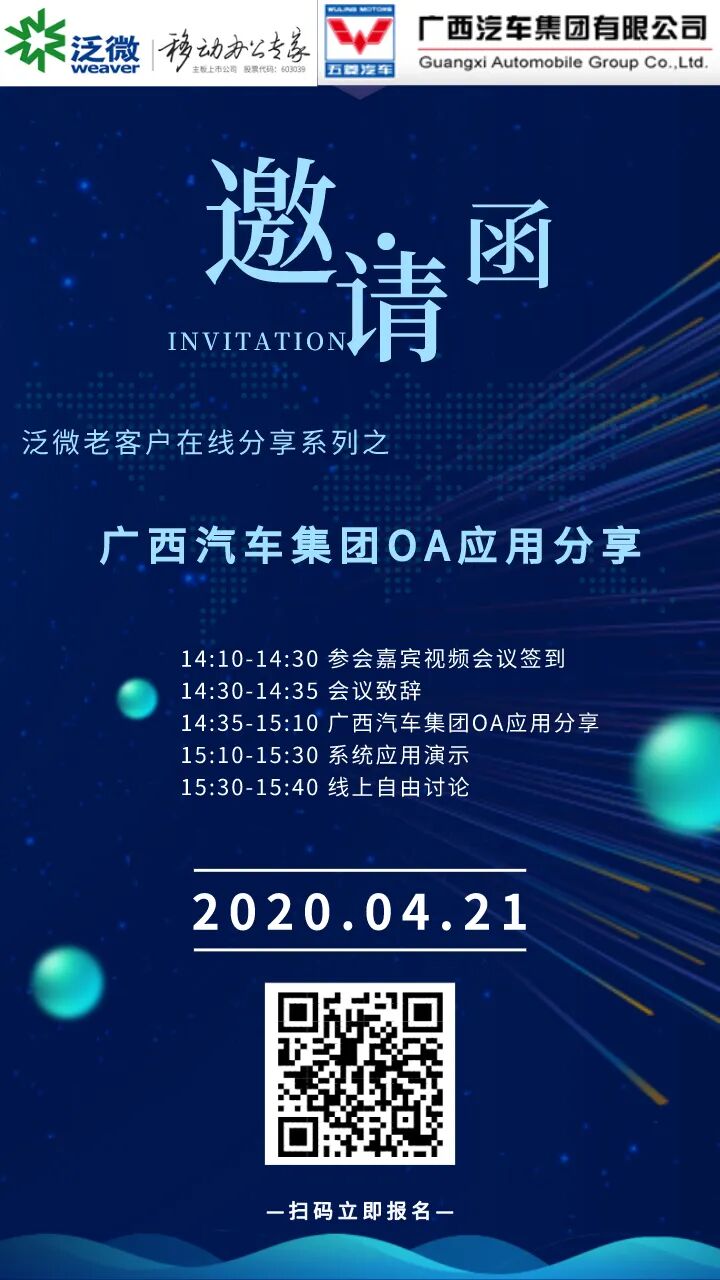 来源:泛微华南发布日期2020-04-15 16:10浏览:4月21日,泛微华南,有一场老客户线上应用分享会,等待各位CIO、IT经理的到来......
