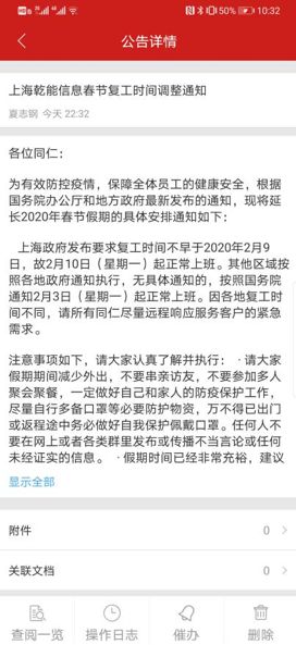 同时,用流程审批确认的方式,改变微信、QQ群等通知方式,确保重要工作通知全员知晓。