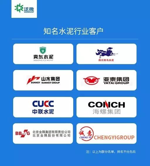 这12家大型水泥企业中的海螺集团、冀东水泥、中国联合水泥、亚泰集团、金隅集团已先后与泛微携手合作。